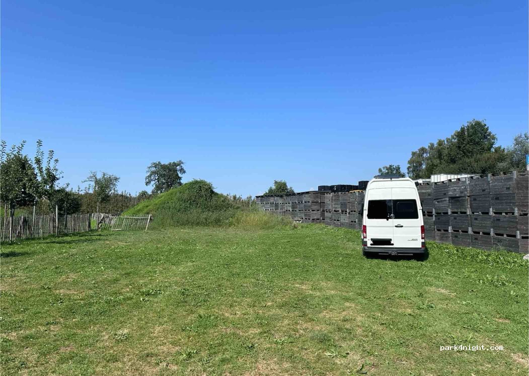 Prachtige plek tussen de appelboomgaarden. Prima te bereiken vanaf de snelweg. Er is een boerderijwinkel in de directe omgeving en in de zomer een kleine bar midden tussen de appelbomen. Stroomaansluitingen zijn aanwezig. Daar kan het toilet gebruikt worden tijdens de openingstijden van de boerderijwinkel.