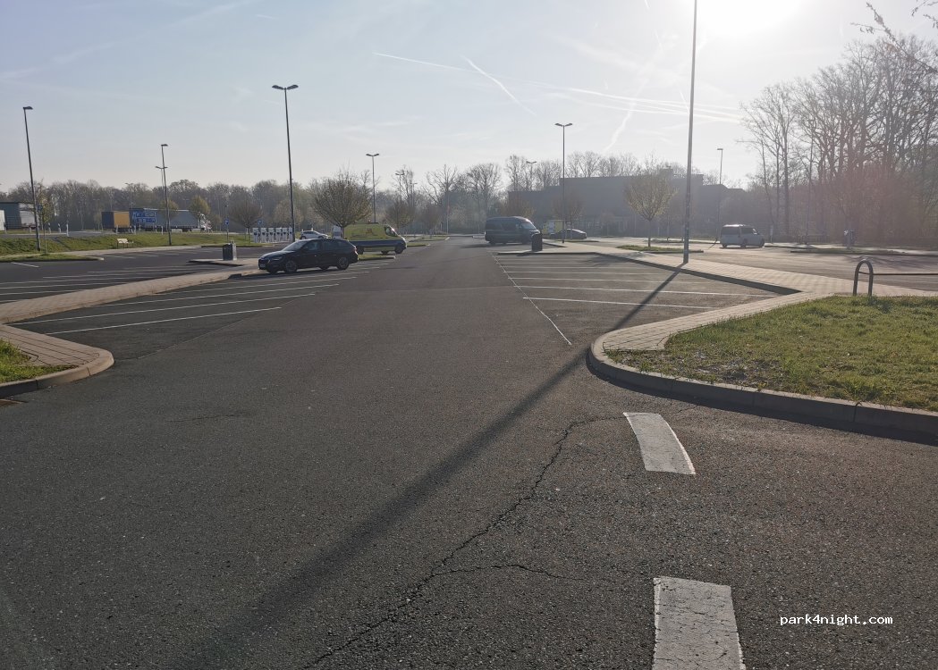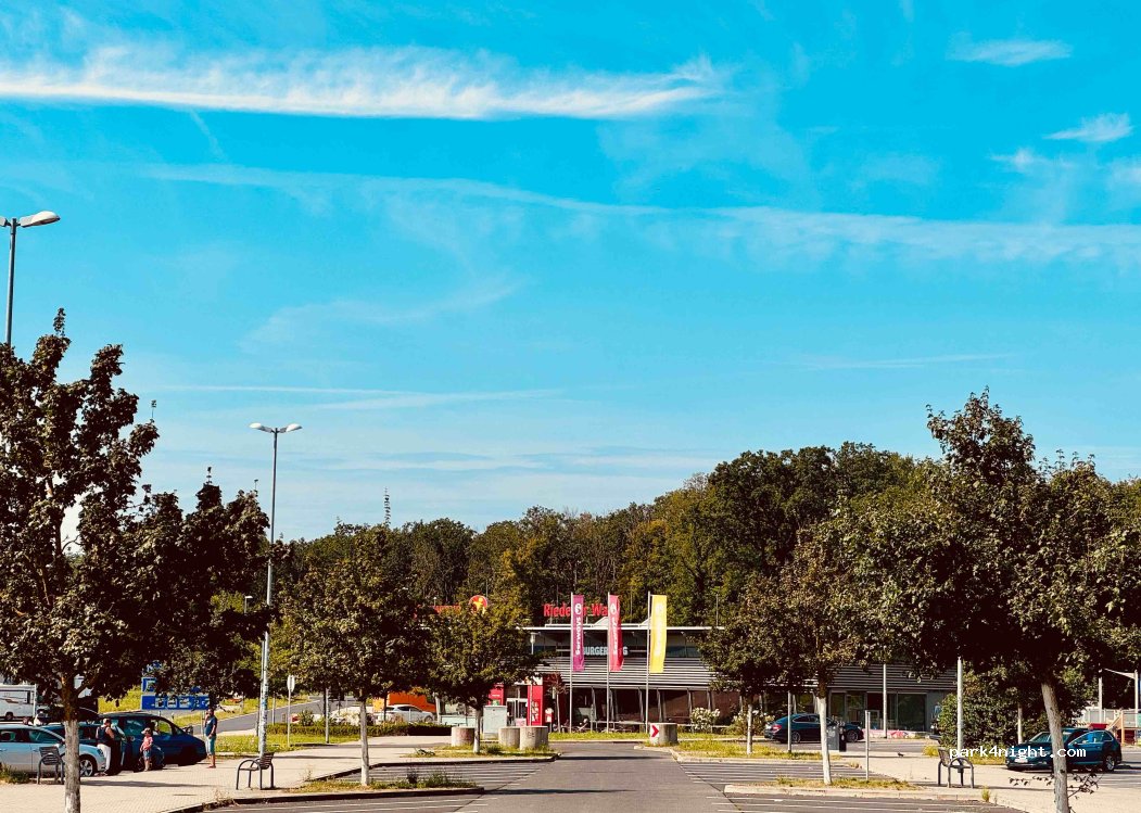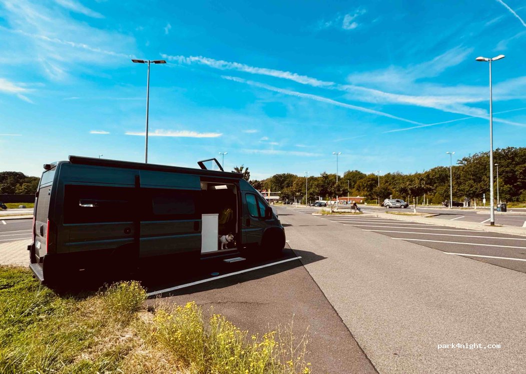 Está bien para pasar la noche con una autocaravana, ya que ningún camión puede bloquear las plazas de aparcamiento más pequeñas. Muy tranquilo para zona de descanso en carretera. Directamente en el aparcamiento, al lado de las columnas eléctricas, hay un sendero agrícola con bosque de unos 300 m donde podrá pasear con su perro.