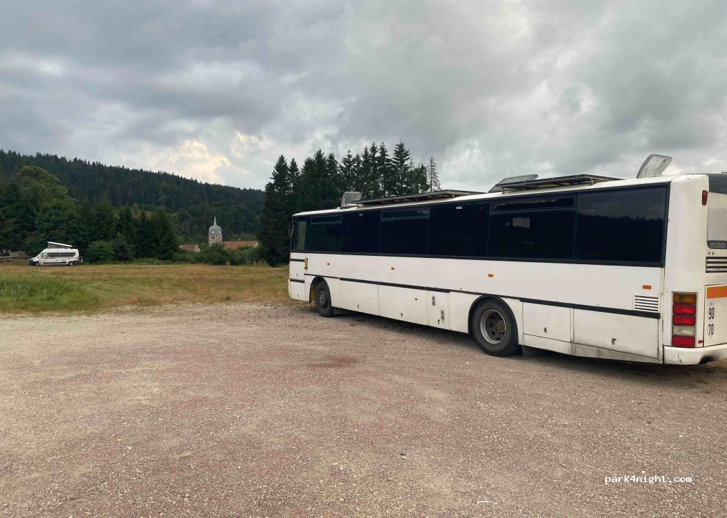 Plusieurs places de parking dont certaines devant les monuments aux morts (elles ne font pas partis de l’hôtel) . Nous y avons dormi deux nuits lors du Tour de France . Chemin en contrebas pour rejoindre le lac et l’abbaye. Plusieurs camping car y viennent seulement personne commente! De l’eau et un wc public sont au village. Les habitants acceptent et même l’hôtel ayant discuté avec eux