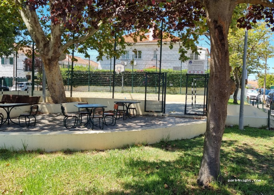 free, but always almost full. there are always free spots in the neighboring street though (end of April). there are park benches and seats with tables, garbage bin. very nice quiet area. hobby basketball field that closes at 22:00. Visit the Pastelaria Careca around the corner for their famous sweet croissants!