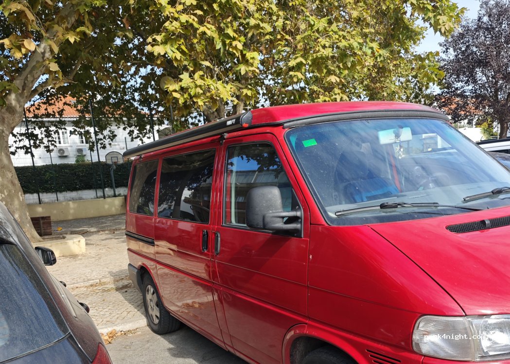 Simple parking near Belem Tower. Parking for converted van or short camper van. Max 5.50m. Picnic table and playground in the parking lot