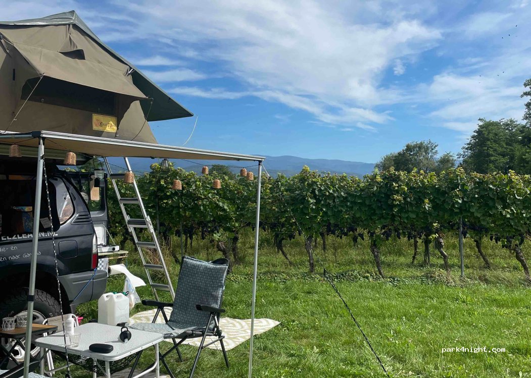 Schöner Stellplatz auf einer Wiese zwischen den Reben, teilweise mit Strom. Sanitäranlagen waren soweit in Ordnung, Check-In und Bezahlung total unkompliziert und angenehm. Tagsüber und auch nachts hört man die Straßen im Umkreis (wahrscheinlich die Autobahn) recht laut, hat mich jetzt aber nicht groß gestört.