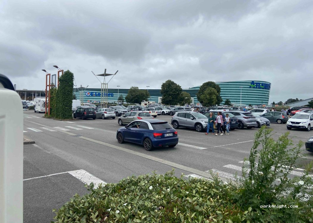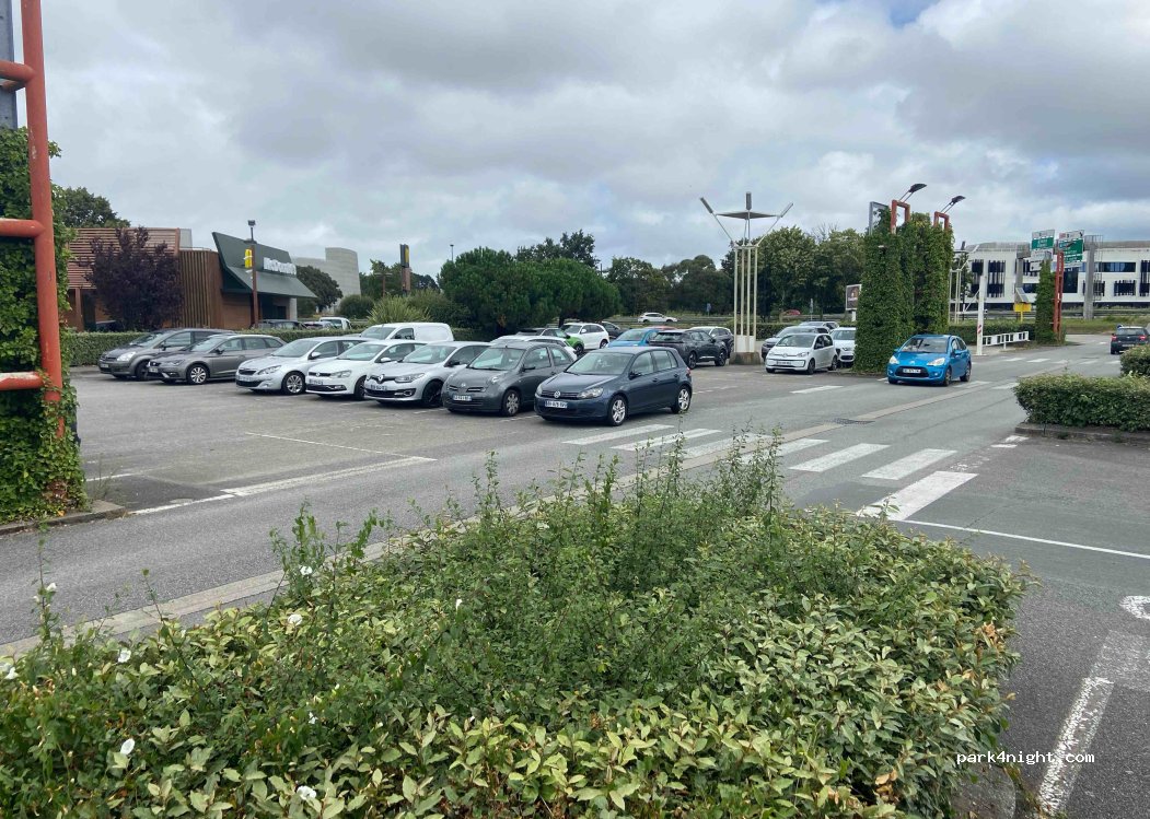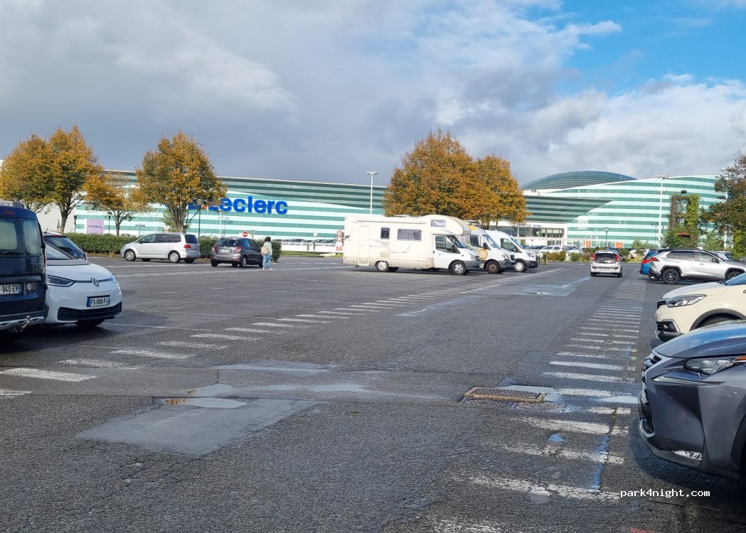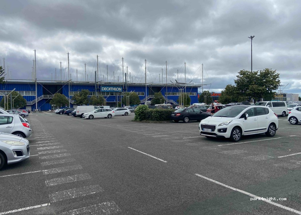 Easy parking and access to train into Nantes. Lots of retail, IKEA, McDonalds, Decathlon, huge E.Leclerc etc. 15 MHs in the parking area at time we were there.