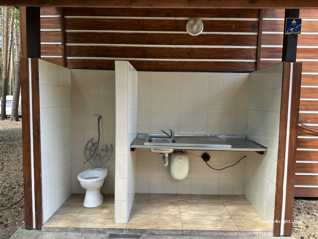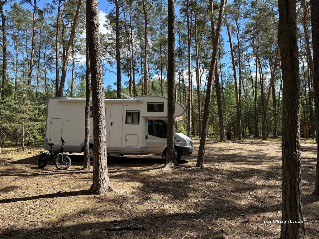 Campamento justo en el lago con una playa de arena. Situado en un pinar. Zonas para autocaravanas y tiendas de campaña, pero por lo demás libre elección del espacio, incluso es posible instalar una tienda de campaña directamente sobre el agua. Pizzería en el lugar. Playa muy bonita con alquiler de barcos y tablas de surf.