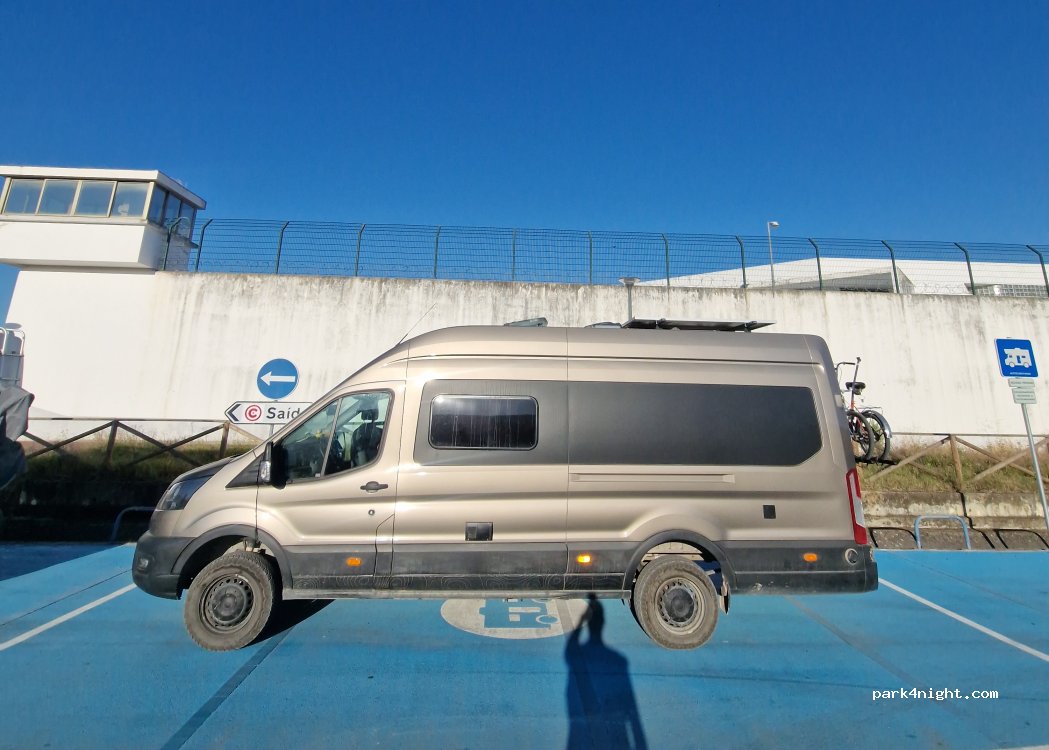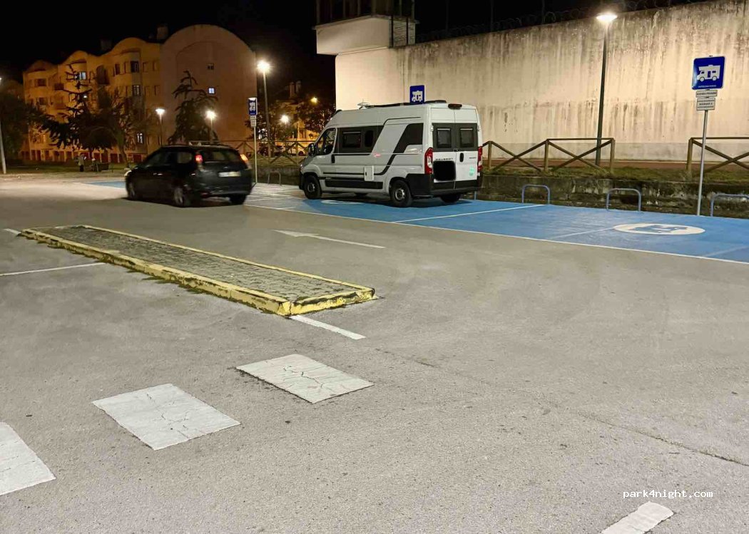 We spent a very quiet night here in November. Even though we were the only Motorhome we felt quite safe beside the prison wall!!! Great supermarket for groceries, clothes, optician etc. Thank you Continente for making this parking available.