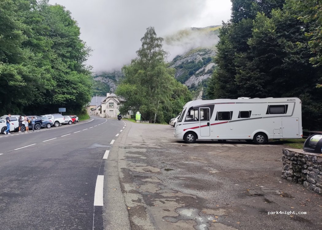 Great stopover for cycling up Col du Tourmalet. Stayed overnight, no problem. Some road noise but shaded.