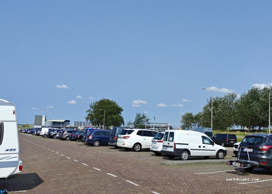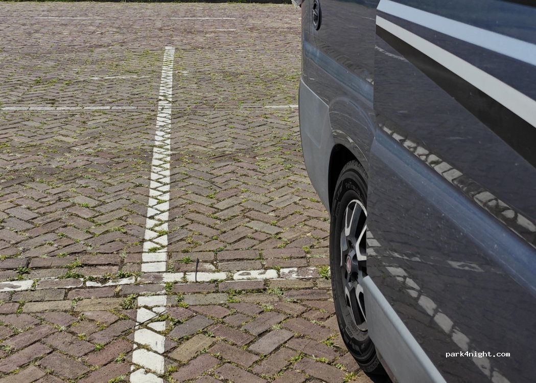 Grand parking au ferry, aucune restriction. Les espaces plus grands sont immédiatement à gauche (voiture avec remorque/camping-car, camping-car...) Toilettes payantes 50 centimes dans la location de vélos (il y a aussi des vélos électriques). Accès direct aux sentiers de plage et le long de la promenade menant à la ville.
