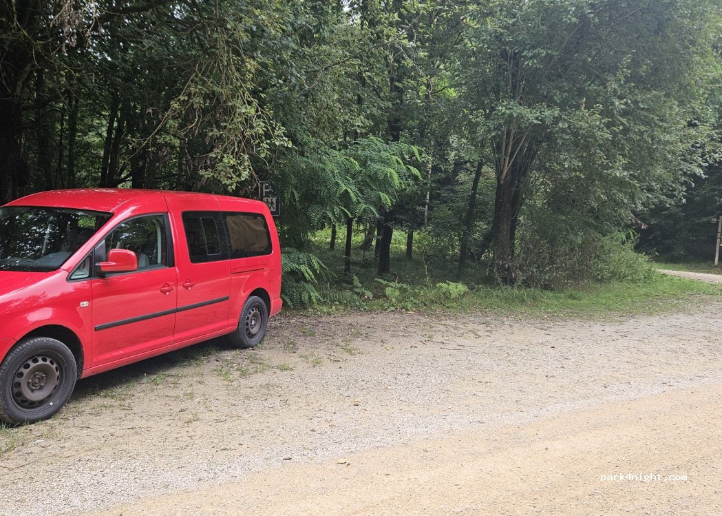 Aparcamiento “Hohmichele”. El pequeño aparcamiento para excursiones se encuentra en medio del bosque. Se encuentra muy cerca del túmulo funerario celta de Hohlmichele y en Abbessinnenweg. Sin bote de basura. El cartel también está bastante cubierto de árboles. Pero es maravillosamente silencioso.