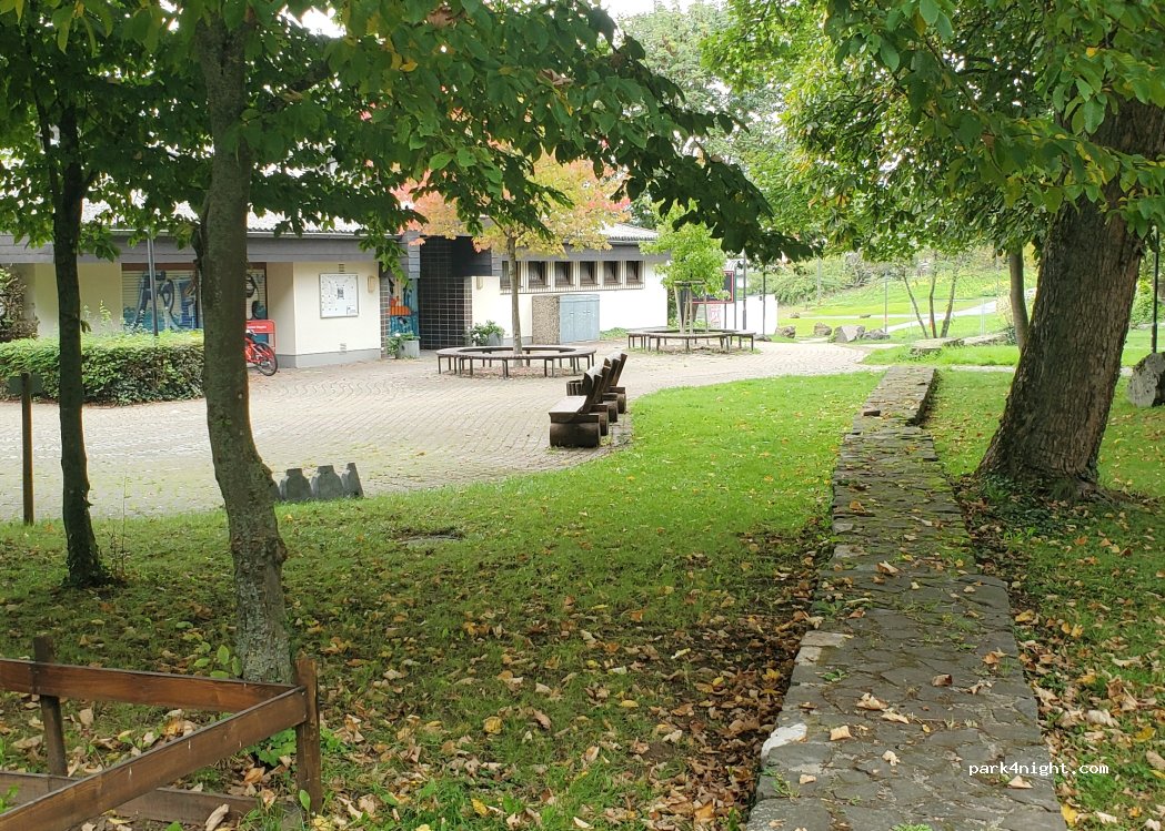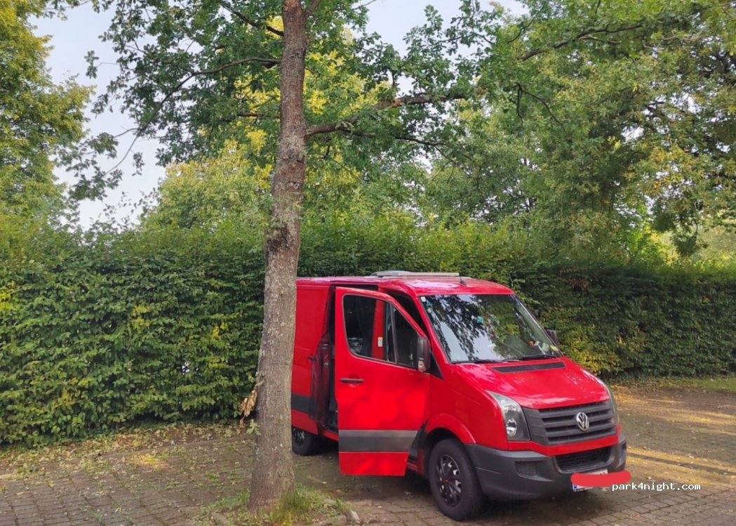 Schattiger Parkplatz beim Erlebisbad Münstermaifeld. Sind spät angekommen und bevor die Badegäste kamen wieder gefahren. Zentrumsnah. Kleiner Park direkt daneben