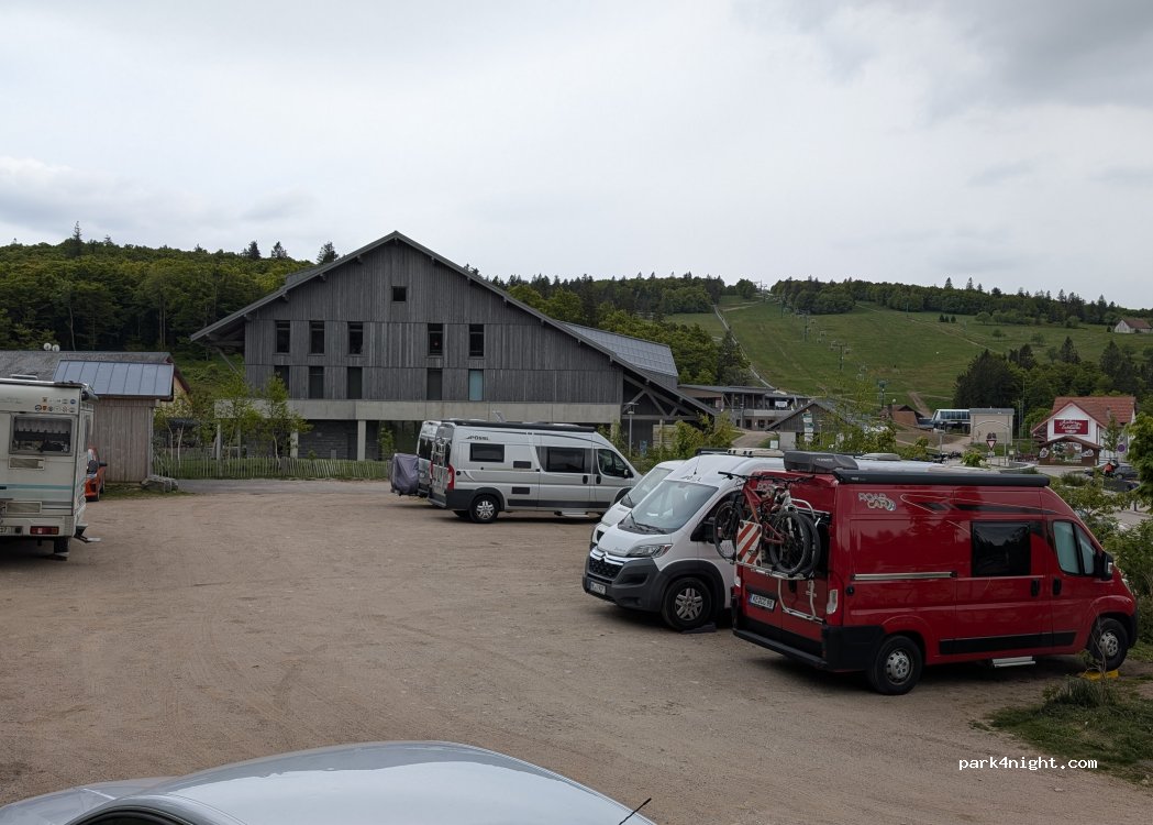 Parking correct, très grand et pourtant plus que complet quand la station est ouverte. Attention de se garer de façon à être sûr de sortir car les voitures se garent à quelques cm de chaque côté avec les portières qui tapent dans le fourgon. Nous avons malgré tout passé 2 nuits calmes, réveil tôt par contre ! Balades en forêt et sur le GR super chouettes ! Les 4 Fours à faire !