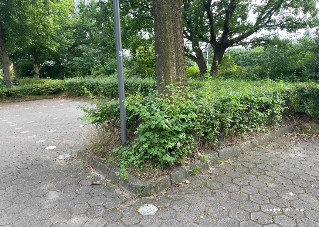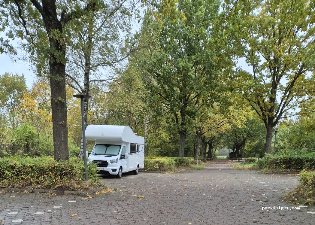 Großer und ruhiger Parkplatz, leer wenn keine Spiele sind. Haben kein verbotsschild entdeckt. In 1 min Entfernung ist ein schöner Spielplatz!