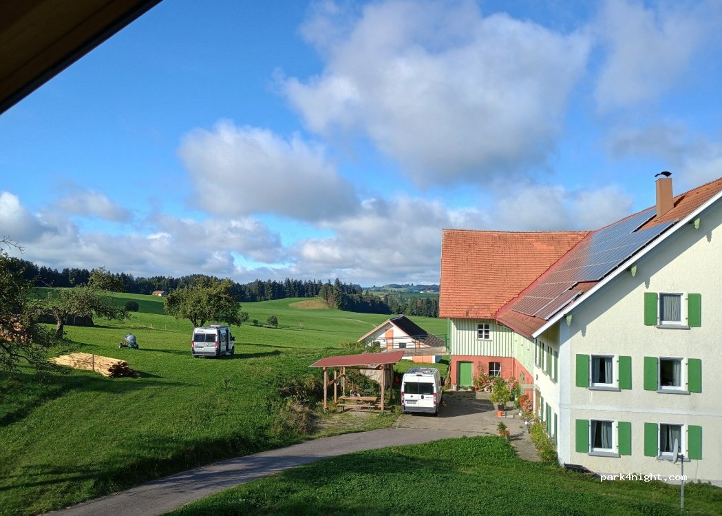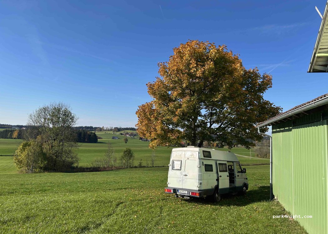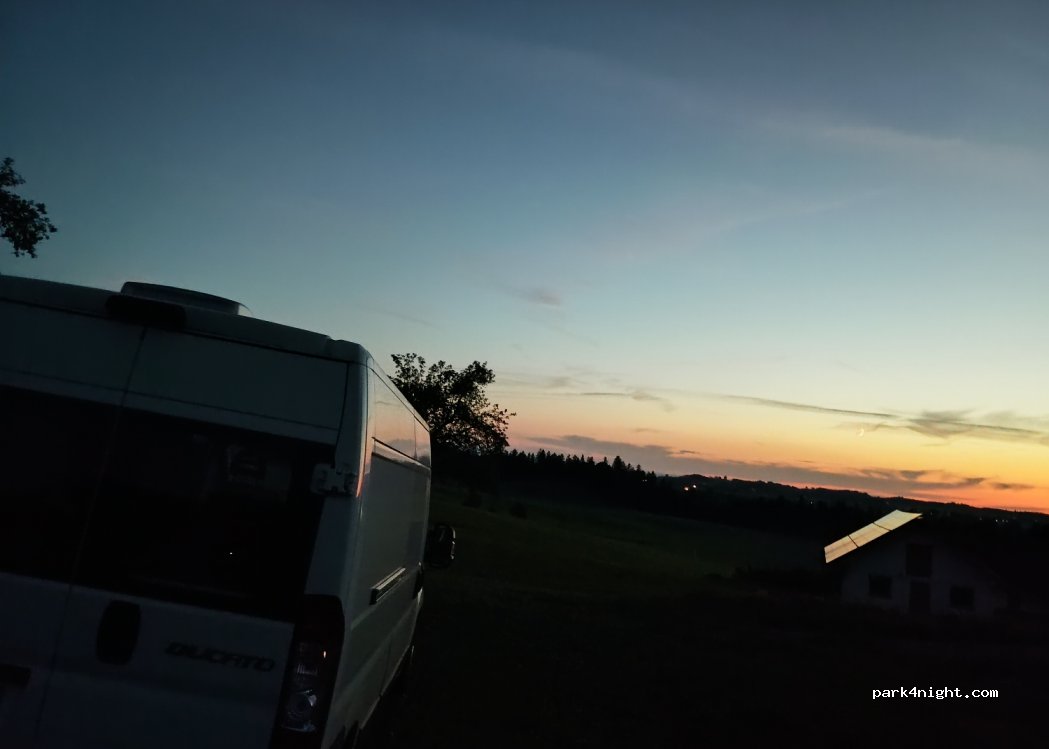 Space for 2-3 RVs on a former farm. Beautiful views of forests, meadows, and the Swiss Alps. Fresh spring water. Swimming lake 3 km away. Village shop about 1 km away. Fishing possible at the neighbor's house. Free of charge, but voluntary donations are gratefully accepted. Please no emails or calls. Plenty of space available. There is usually someone at home.