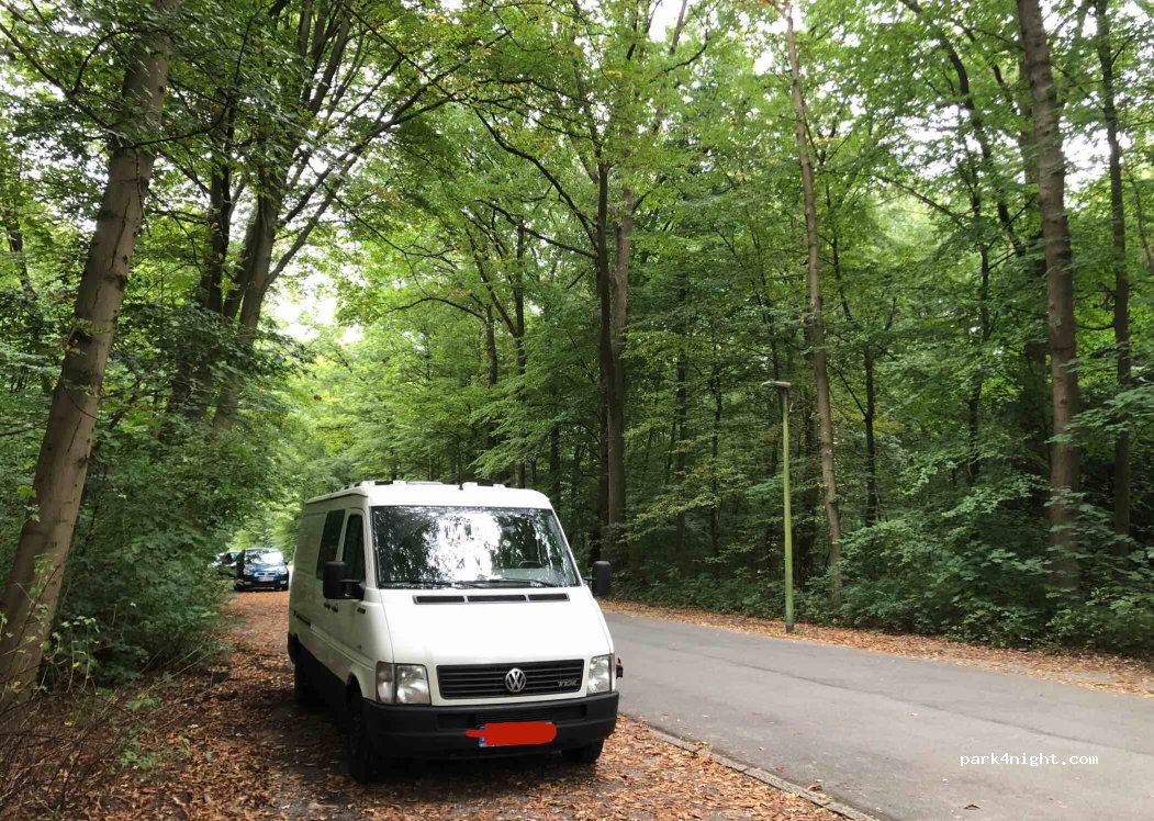 There are actually always free parking spaces here. They are located in the middle of the Bürgerpark, one of Bremerhaven's city parks. Vans and cars often park here to spend the night. It is relatively quiet as this street is not very busy. About a hundred meters from the parking spaces is the Bürgerpark barbecue area, where there are garbage cans and a relatively large pavilion.