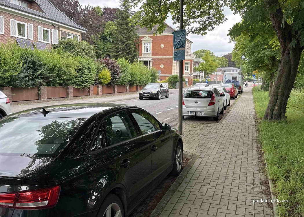 Many free parking spaces along the street, no prohibition signs, even large motorhomes possible