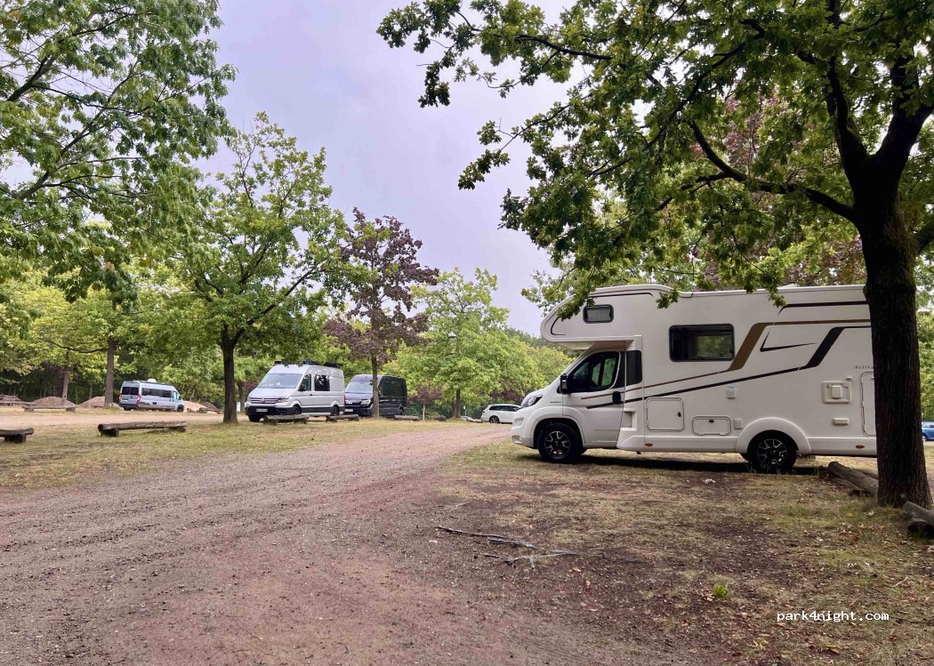 Haben am Vorabend eines Besuchs dort gestanden. Gegen 23 Uhr fuhr ein Auto vorbei und notierte die Kennzeichen der anwesenden Wohnmobile. Gegen 1 Uhr fuhr nochmal ein Auto ums Wohnmobil. Uns hat das sehr verunsichert, wir wussten aber nicht wo sonst hin. Sonst eigentlich eine gute Möglichkeit für Personen mit weniger Angst um morgens gleich im Park zu sein.