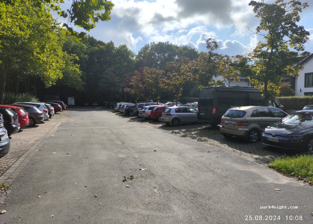 Estacionamiento de Erkrath Freiheitstrasse en el estadio Toni Turek. Las plazas de aparcamiento están un poco inclinadas, pero definitivamente no es un problema aparcar allí para pasar la noche.