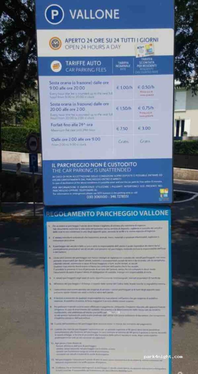 Paid parking without services, well lit, suitable for pit-stops. The center of Desenzano del Garda is a 5-minute walk away. Free parking from 2:00 to 9:00