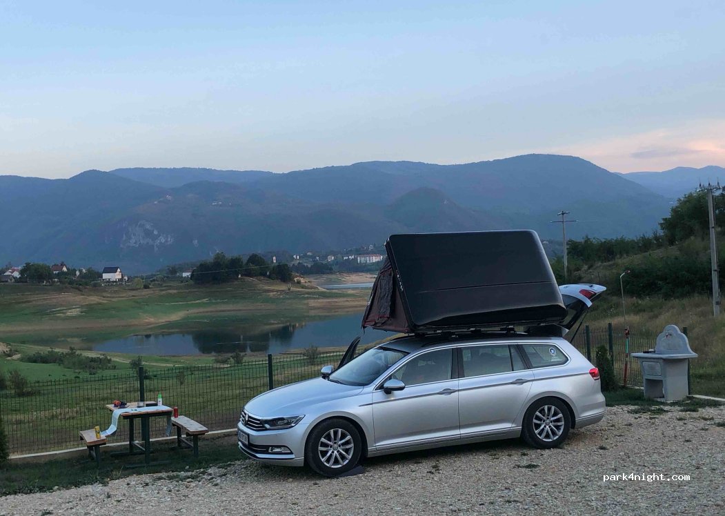 New, beautiful, clean campsite with showers, toilets, washing machine, grill, WiFi, picnic facilities. Pitches are flat and partly gravelled, great view of the lake. Operators are friendly, young people who speak very good English. Very quiet at night. Somewhat steep and narrow access