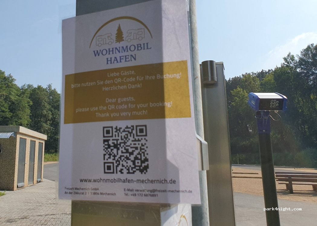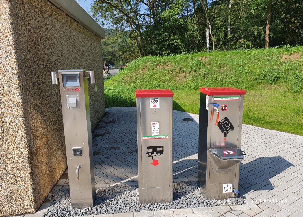 Nagelneuer Reisemobilstellplatz in Mechernich. Sehr schön angelegt. Plätze durch Baumstämme (mit Zurösen für die Markise - sensationell!!) voneinander getrennt. Stromsäulen und Ver-Entsorgung - alles da. Ruhig gelegen und doch nur knapp 1km Fussweg in den Ort. Erholungspark Mühlental genau gegenüber 2 Restaurants in der Nähe. Online oder vor Ort am Terminal buchbar.