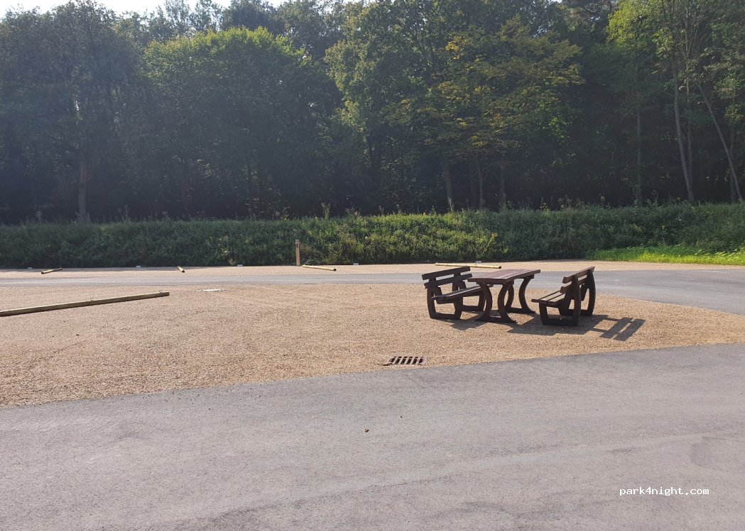 36 Stellflächen mit festem Untergrund. Auch große Wohnmobile möglich. Platzreservierung (online) mit Nummernschilderkennung. In unmittelbarer Nähe eines großen Familienparks mit Spielplatz, Sommerrodelbahn. Im Umkreis diverse Lebensmittelgeschäfte, Krematorium Bäckerei etc (nicht fussläufig erreichbar). Leider hört man die Bundesstraße am Platz recht deutlich. Keine Dusche keine Toilette!