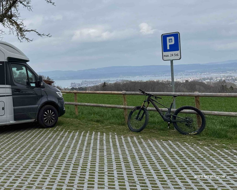Super Platz mit toller Aussicht auf Untersee. Tagsüber Spaziergänger und Hundehalter. In der Nacht absolut ruhig. Ausser Abfall hat es nichts und man muss autark sein. Bitte Abfall mitnehmen und nicht wie bei uns, wo einer dieser riesigen Camper quer über mehrere Parkplätze Stand. So gibt es schnell Verbote an solchen Orten.