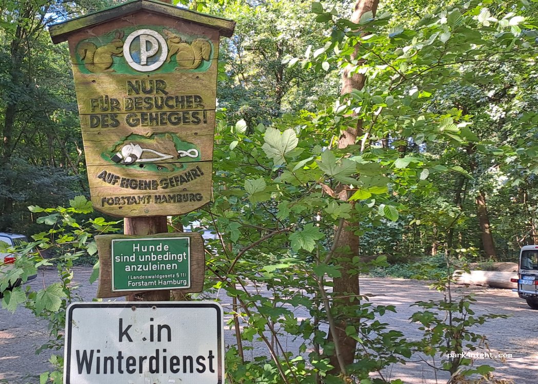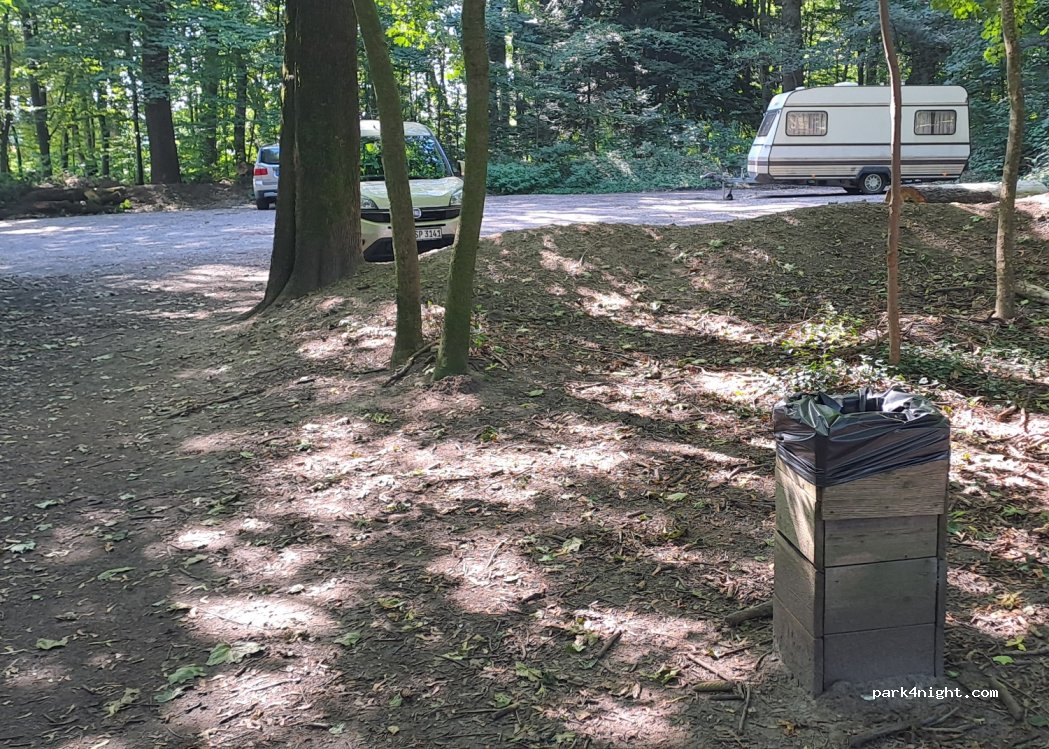 Ruhiger Parkplatz im Wald mit Blick auf die Tiergehege. Keine Sanitäranlagen oder Mülleimer vorhanden, aber für eine Nacht ein schönes Plätzchen.