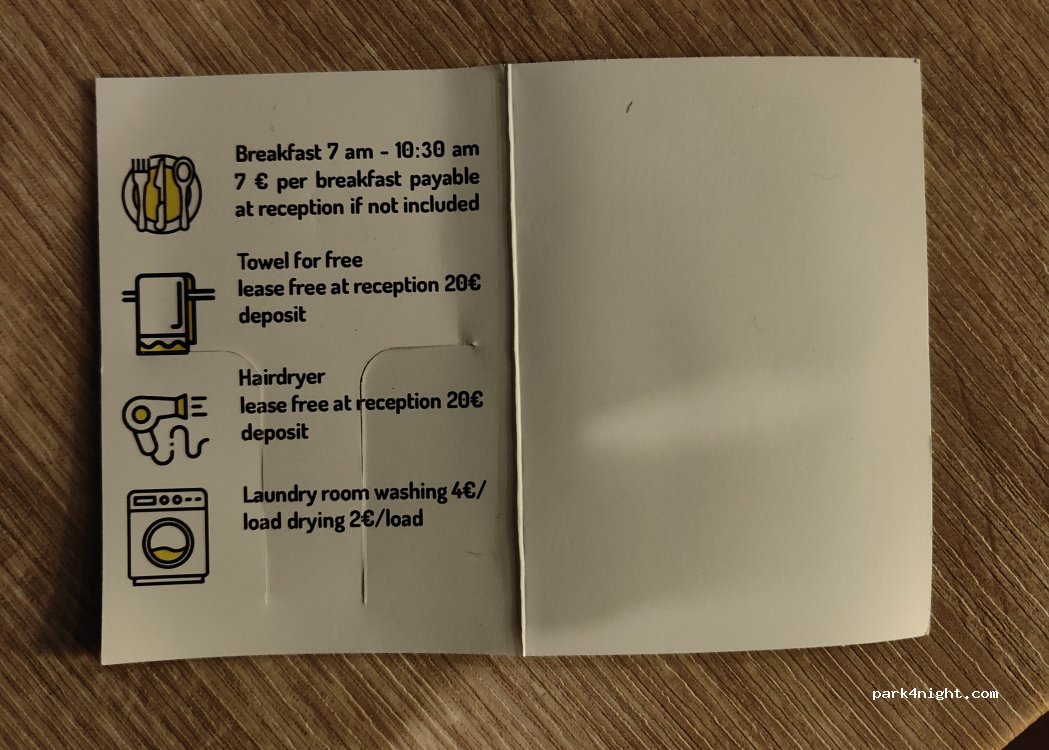 nice place for a night or two. best price for camping parking. no electric or water service but wc and showers are free and very clean. washing machine and dryer is with a 4euro fee each.