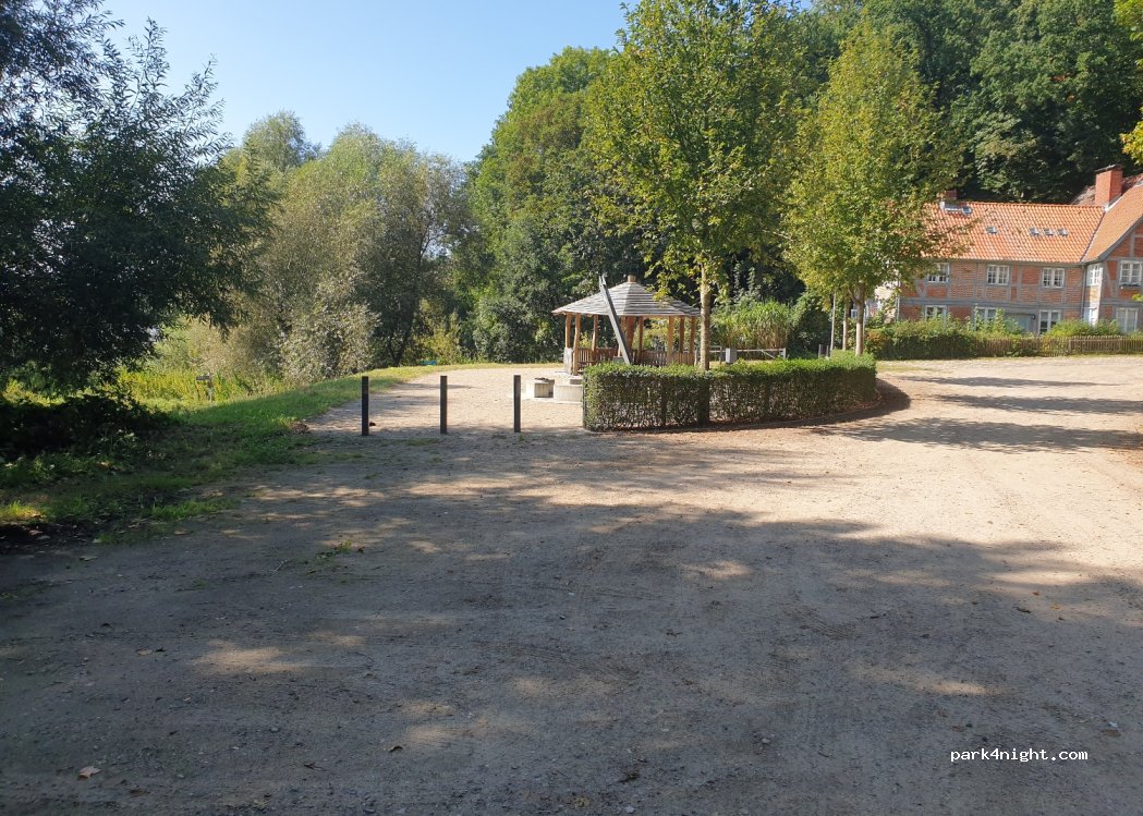 Nice parking lot almost on the Elbe with a fireplace and a shelter and shady places. There is a restaurant nearby about 200 meters and the historic old town of Lauenburg is only about 800 meters away. The access leads over a narrow cobblestone path relatively steep hill from 7 meters WM have a hard time here