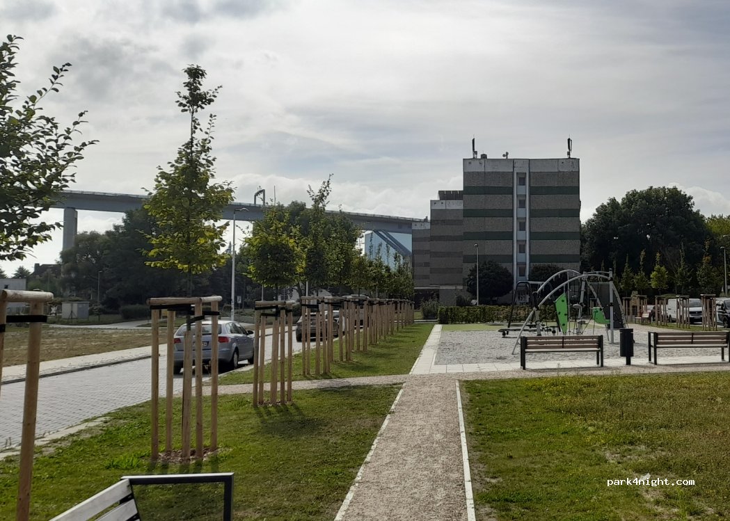 Wide parking strip on both sides of the apparently newly created "Reiferbahn" park, also suitable for long vehicles.