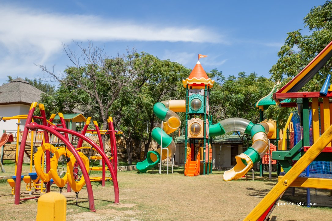 Grote speeltuin "Fantacastello" met natuurlijk gras