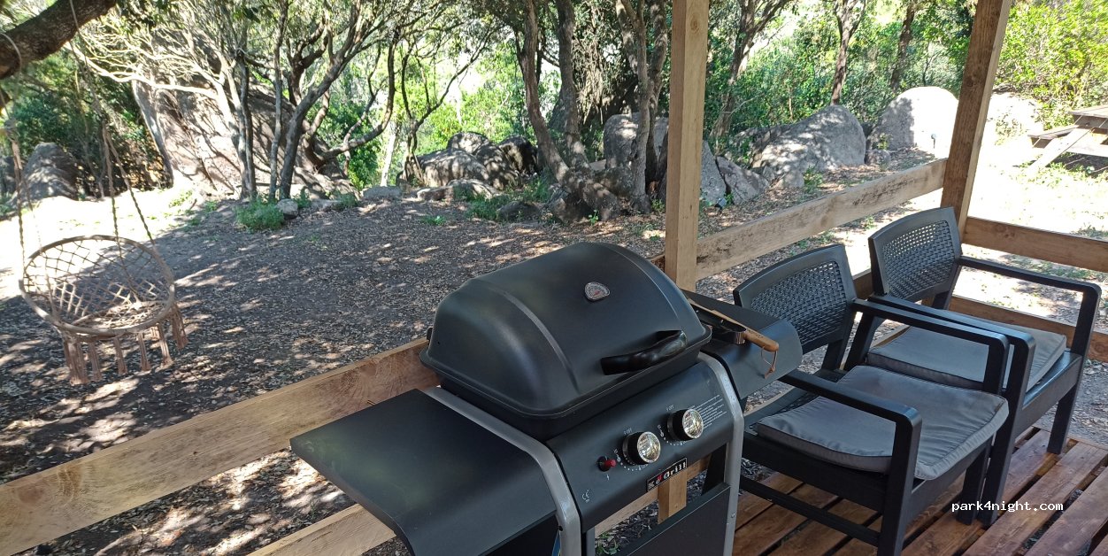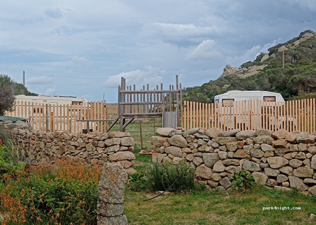 Piccolo campeggio agricolo con molti animali. Bagno con doccia panoramica, area barbecue con frigorifero e lavello. Lavatrice. Lettini prendisole. Tavoli da campeggio. 4 piazzole per camper immerse nel verde. Sentieri escursionistici con vista sull'Arcipelago della Maddalena. Tiro con l'arco per divertirsi. Prezzi per due adulti all-inclusive: maggio 30 € - giugno 35 € - luglio 40 € - agosto 50 € - settembre 40 € - ottobre 35 € - novembre 35 € - aprile 30 €