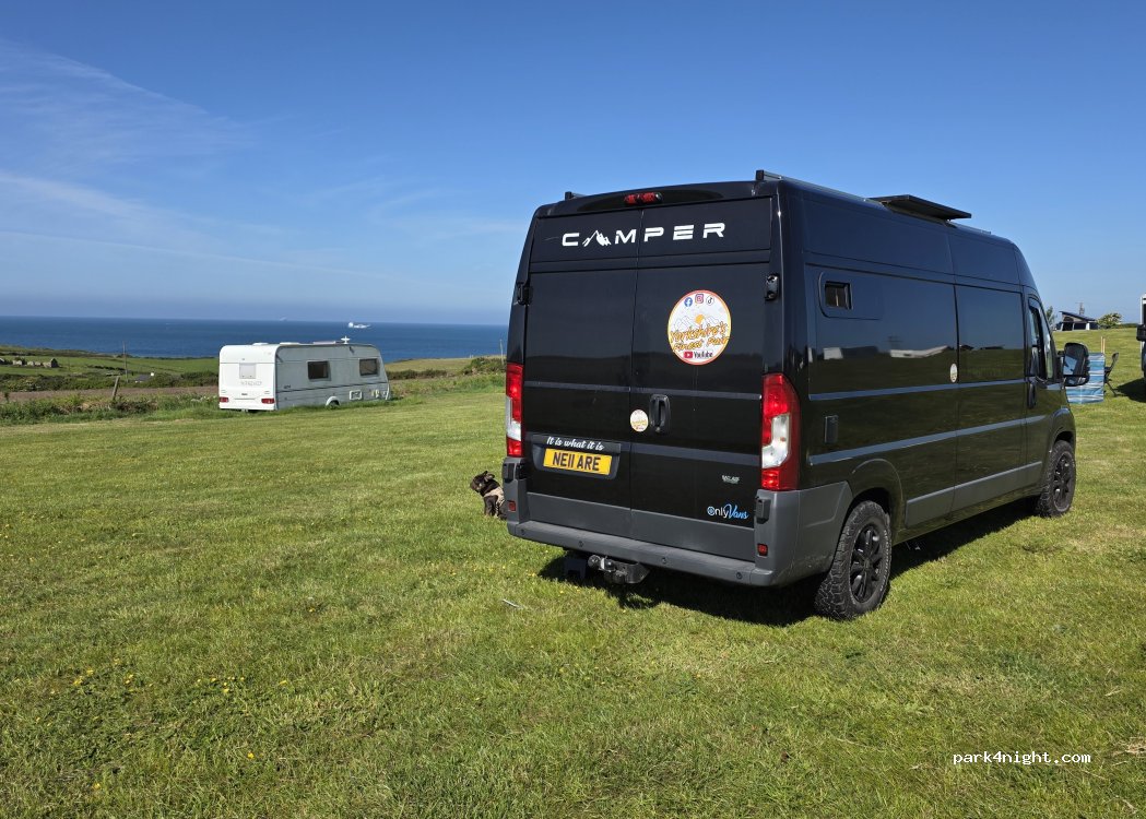 Absolutely wonderful spot, fantastic views. Toilet, shower& water point on site. Mr Jones - phenomenal host who helped us tow our motorhome off the wet grass that we’d stupidly parked on! He does have a top field that is much drier & with better views! Super friendly & genuinely lovely gentleman. Pub, cafes & restaurants all within a very short walk & it’s extremely close to the beach