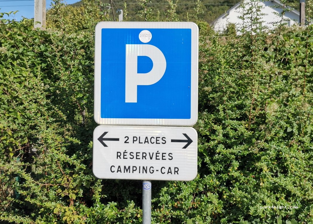 Deux places réservées pour camping-car sur un grand parking à côté de la gare. Pas de service, ni d'ombre. A proximité immédiate de la vélo route 6. Très calme, juste un train de temps en temps. Accès par le rond-point.