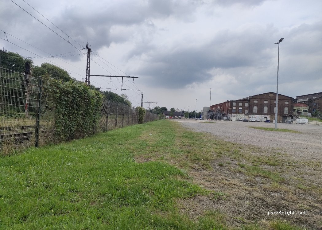 In het weekend is deze plaats niet kostenlos. Tijdens ons bezoek moesten we 5€ betalen en was er een flinke rave gaande van 21 tot 8 uur de volgende ochtend. De parkeerplaats is van een fabriekshal / loods discotheek/ club. In het weekend dus veel overlast van jongeren, alcohol en drugs gebruik, alsmede van de harde muziek. Doordeweeks kan dit een rustige plek zijn, gezien het afgelegen ligt.
