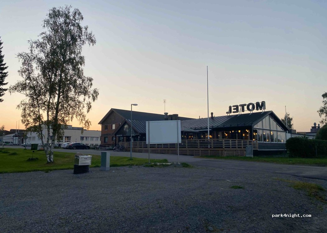 Camping Haparanda, entrée par le motel. Toilettes/douche 3 emplacements et accès au sauna/douche par le motel.