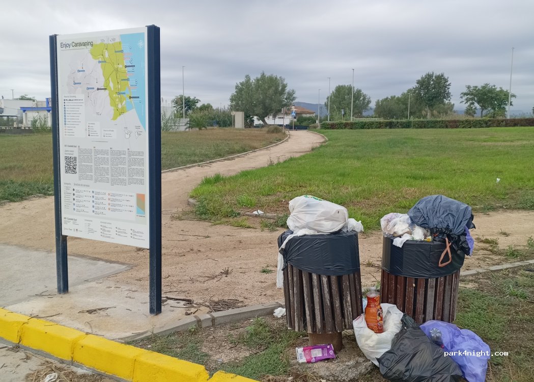 El lloc és fantàstic, a prop d'una platja verge i un passeig. El tema és que s'hauria de controlar que la gent no passi més de les 72 hores, perquè fa pinta que alguns usuaris és pensen que és un càmping privat. També és complicat saber com has d'estacionar correctament, moltes línies al terra que no saps si estan en vigor o no. Hi ha contenidors grans de rebuig i de reciclatge en les proximitats.