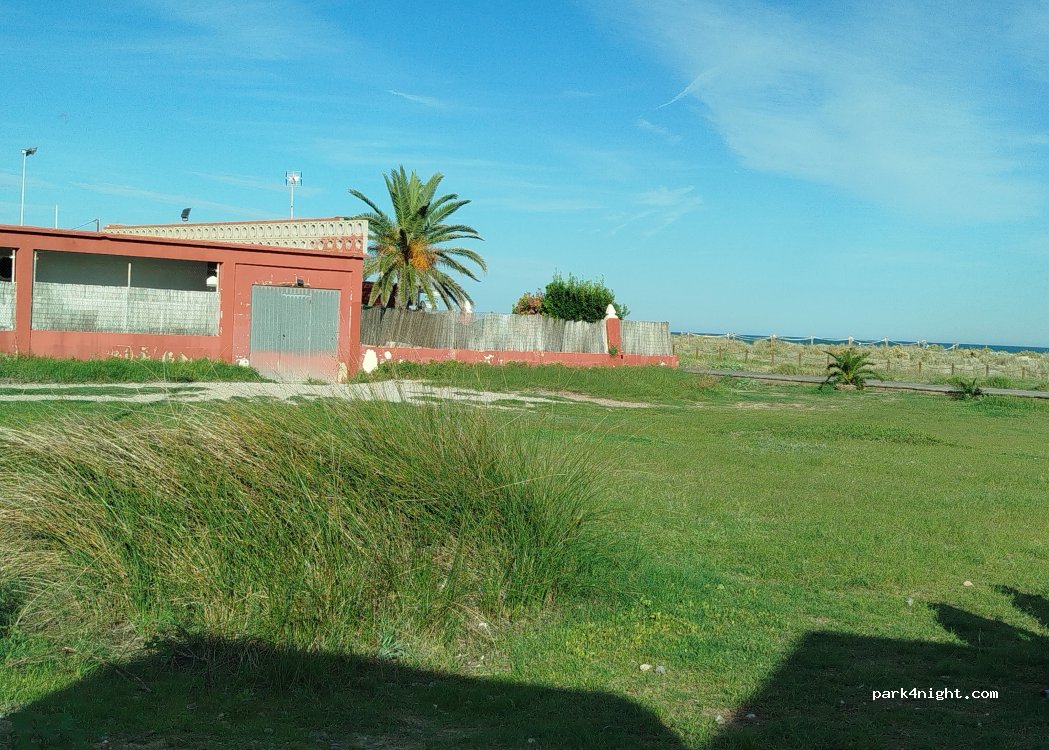 El sitio muy bien. Tiene pocas plazas para aparcar (serán unas 10). No tiene ningún servicio (ni agua ni descarga). Tampoco tiene sombra y en pleno verano al sol se siente. La playa es muy bonita. La zona es super tranquila y familiar. Para una o dos noches esta muy bien pero ir con tanque de agua limpia lleno, de sucias vacio y provisiones porque cerca tampoco hay supermercados.
