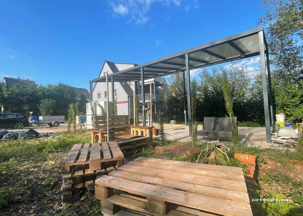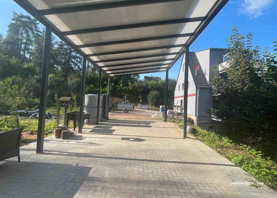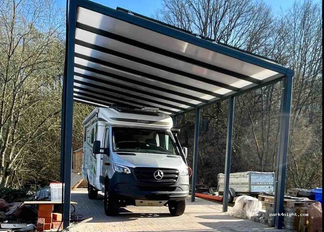 1 überdachter Stellplatz unter einen Carport ist vorhanden, Telefonische Anmeldung & WhatsApp. Stellplatz: Pirmasenser Straße 37 in Verbandsgemeinde 66987 Thaleischweiler- Fröschen im Pfälzer Wald. Es gibt eine sehr gute Bäckerei, 2 Supermärkte und eine Tankstelle im Ort. Da an einer Straße leider etwas Straßenlärm.
