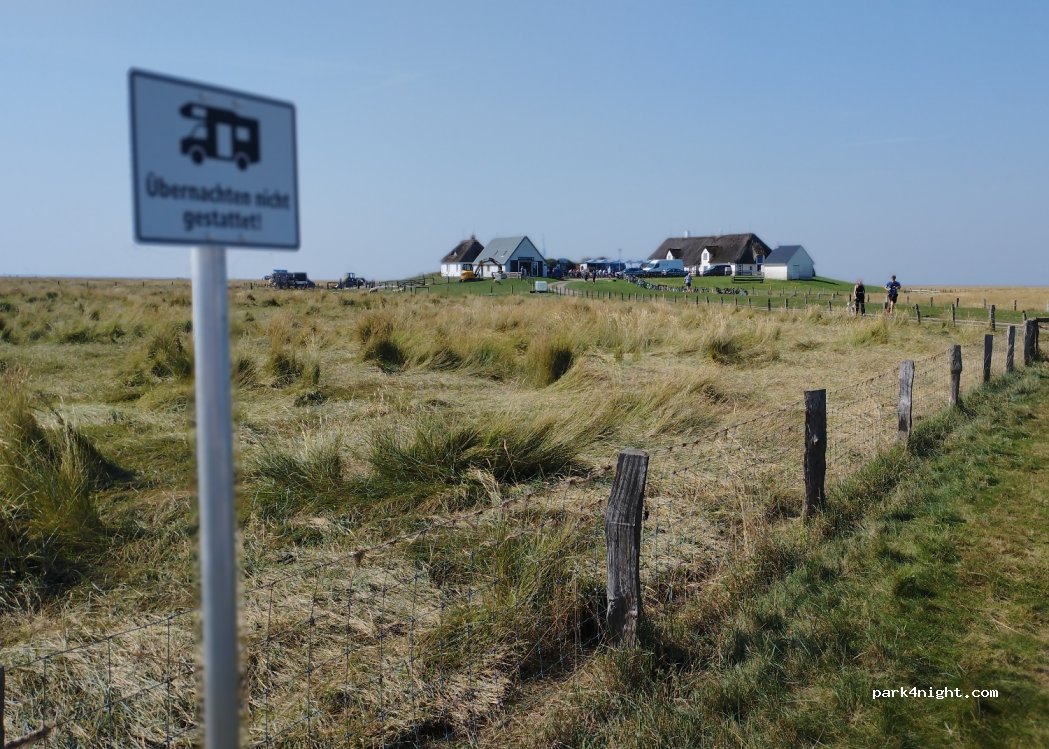 Un aparcamiento habilitado para autocaravanas para disfrutar del Hamburger Hallig durante el día. Además de un centro de información, el Hallig también cuenta con un restaurante con comedor al aire libre. El acceso a este lugar, de 4 km de longitud, se realiza a través de una vía de un solo carril con carriles de adelantamiento. El acceso es de pago y está limitado a un peso total de 3,5 t.