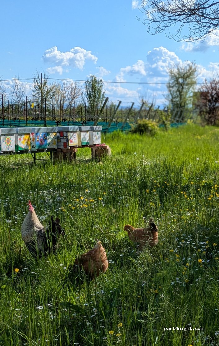 Leuke agri plek. Pas begonnen door enthousiaste bevlogen jongeman. Doet enkel aan organische landbouw welke producten je kunt afnemen. Restaurant, bakker en supermarkt op loopafstand. Je staat midden in het bedrijf aan de rand van de akker tussen de fruit en notenbomen tegen de wijnranken aan. Leuke is dat er ook zo’n 17 bijenkasten staan die hun best doen om dit alles te bestuiven, Aanrader!