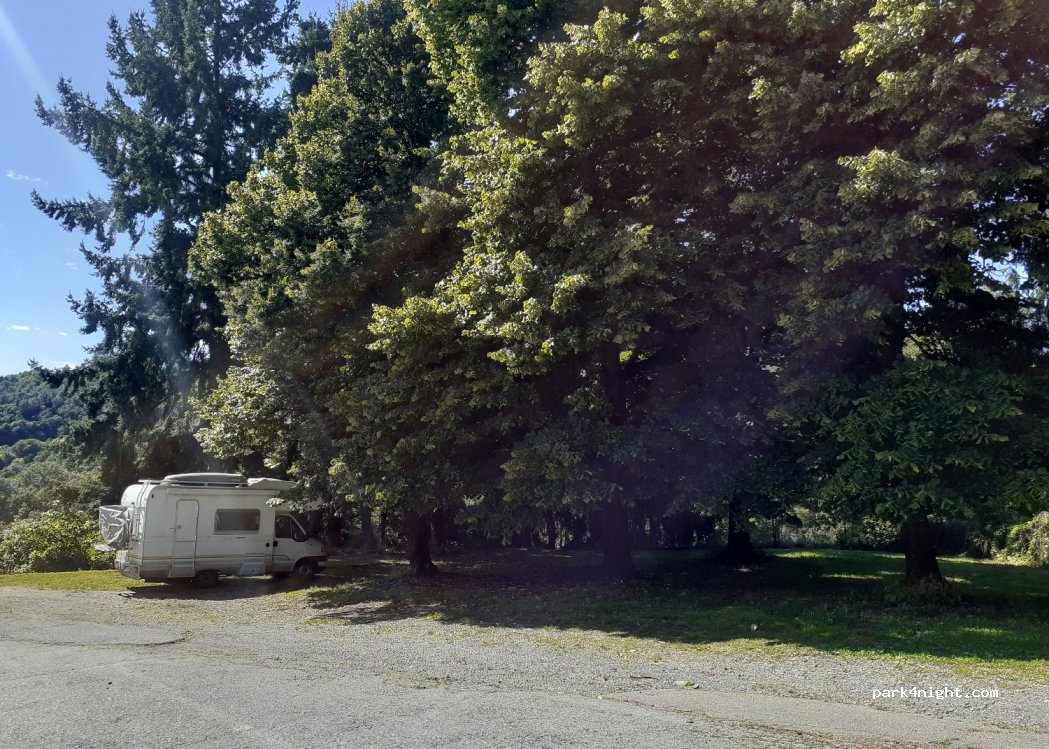 Parking à la Pizzeria Piccola Baita. Très calme la nuit, belles excursions sur les sentiers de la vallée d'Oropa. La pizzéria est excellente.