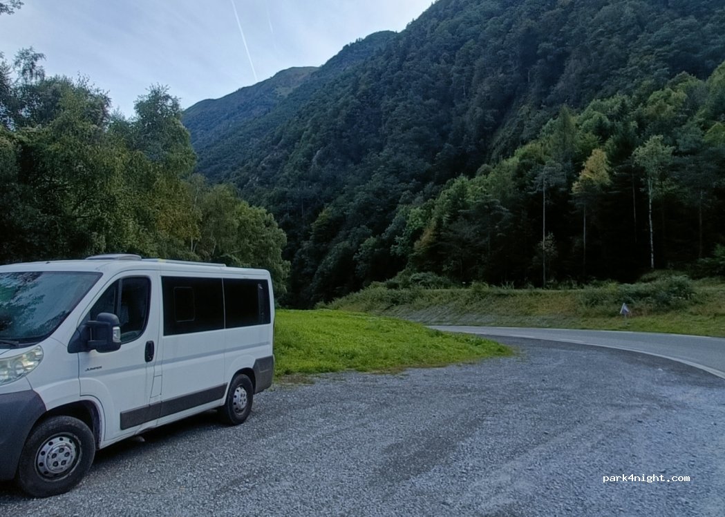 Parking on the side of the road before entering Cauterets. The road is a bit busy in the morning but we slept peacefully. There are no services but you are close to all the excursions of Pont d' Spagna.