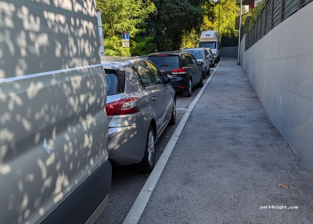 Stationnement sur le bord de la route, la route est très en pente mais bonne pour le stationnement de jour.