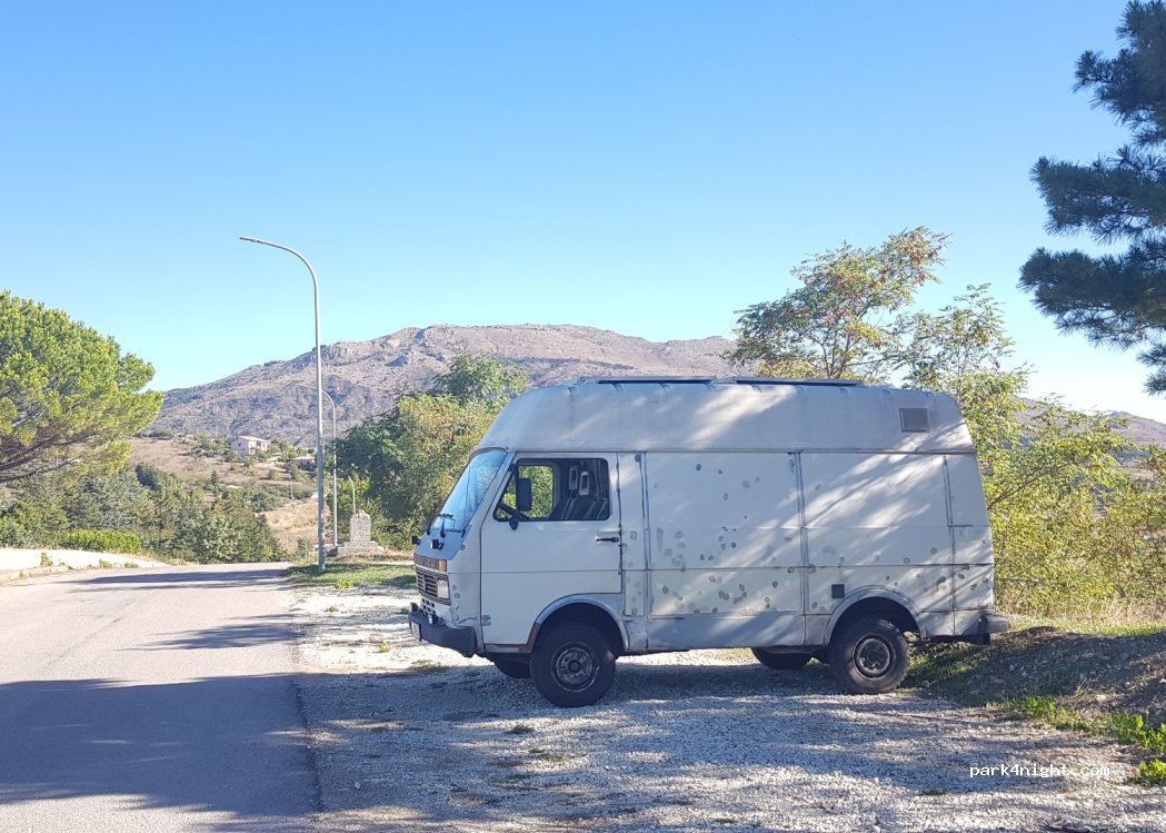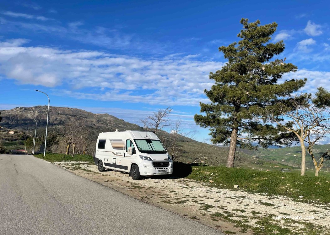 Public car park on the outskirts of the extremely pretty village of Petralia Soprano.