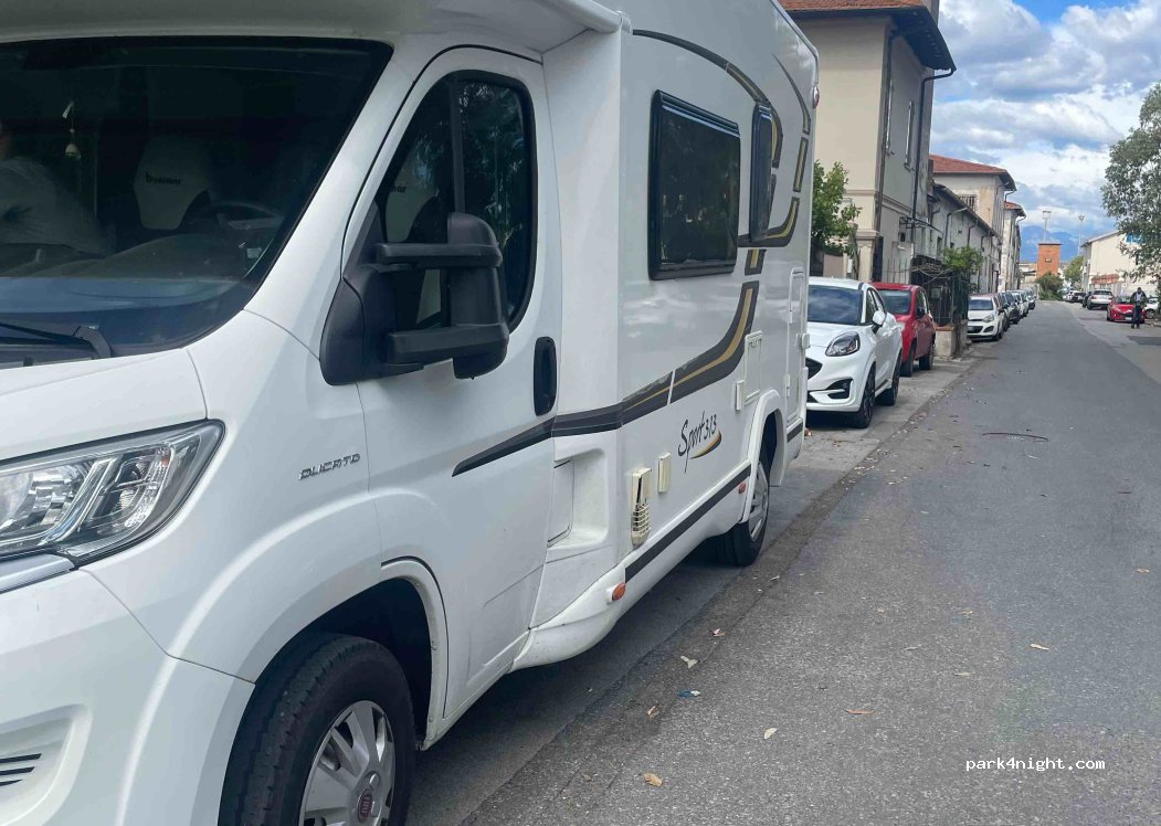 Parcheggio gratuito a 15 minuti a piedi dalla Torre di Pisa. Abbiamo lasciato il camper per alcune ore senza problemi. Non c'è segnaletica vietata.