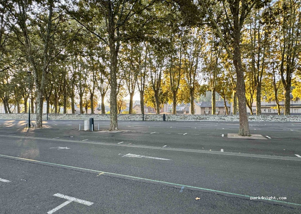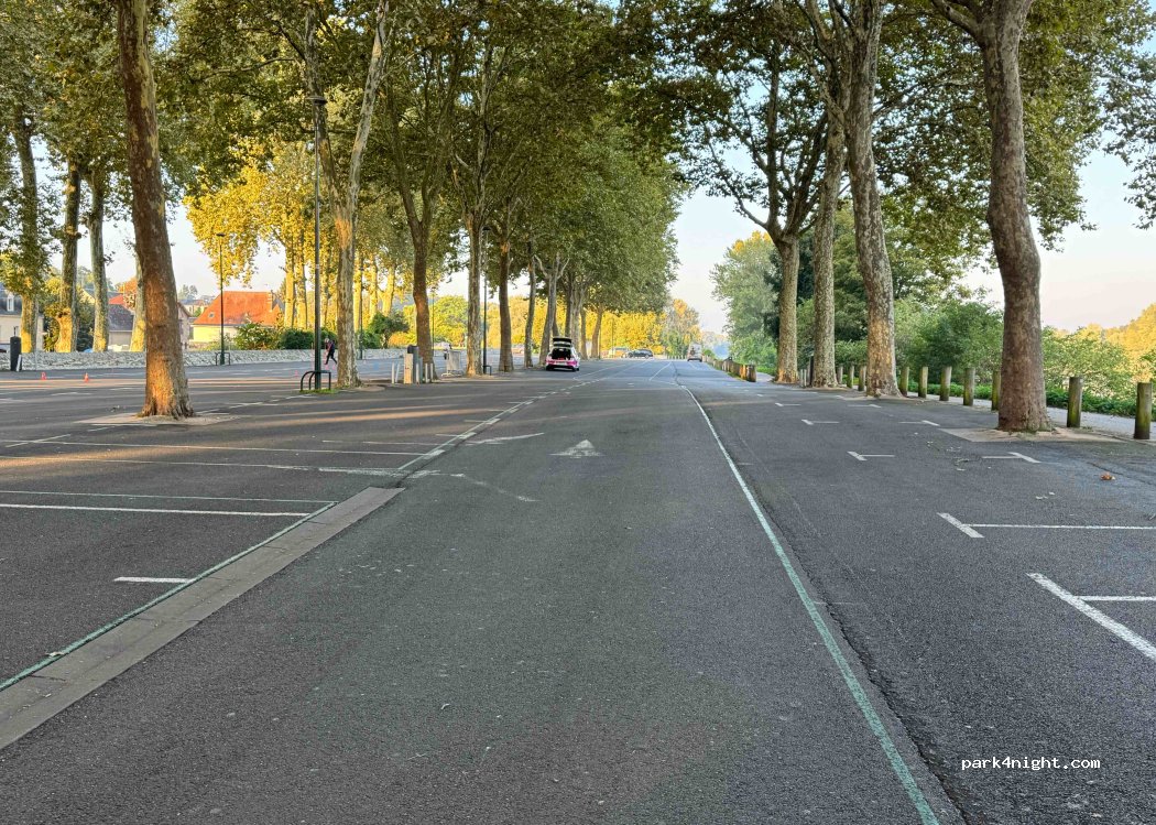 très grand parking. gratuit et très proche du centre ville nuit ok sauf veille de marché. quasi vide en fond de parking. le long de la Loire et piste cyclable. calme. idéal pour 1 nuit, avec soirée en centre ville et visite château le lendemain
