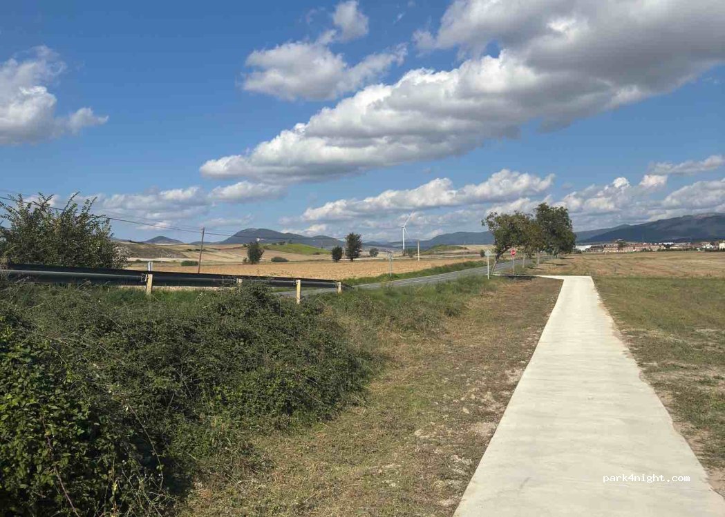 Very Nice peacefull place beside Road, parking little bit tilt, not try long Vans, anyways , hood place to stay, mostly summertime, Arga River below. Històric place parking to watch '36 civil wars scars monument, honouring slayeds cowardly, It deserves a moment, they deserve It a long while.
