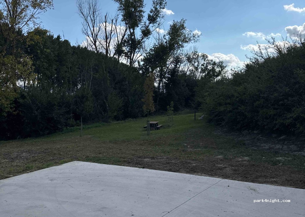 Even tho it was next the main road this is quiet hidden. Not busy after 12am very quiet night. No problems. Some picnic benches and the river is right here. I had to move in the middle of the night and I came here. No trashcans so take your trash home. A few friendly cyclist in the morning but only two.