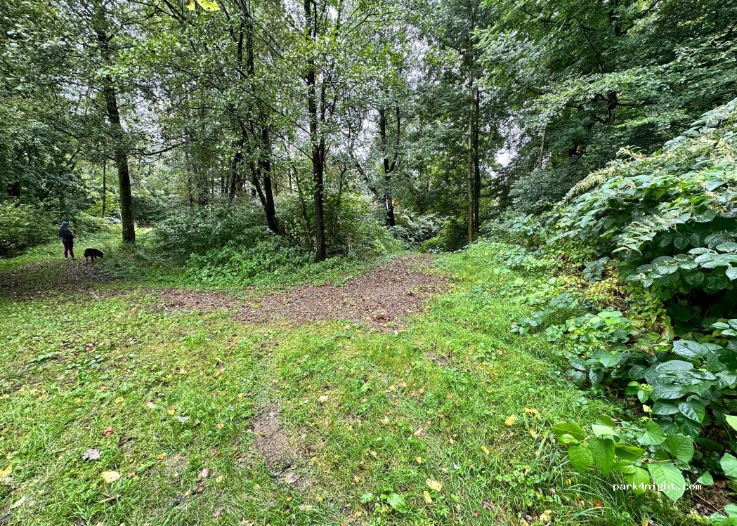 Petite place en forêt. Rouler 10m de la route jusqu'au terrain gravillonné.
