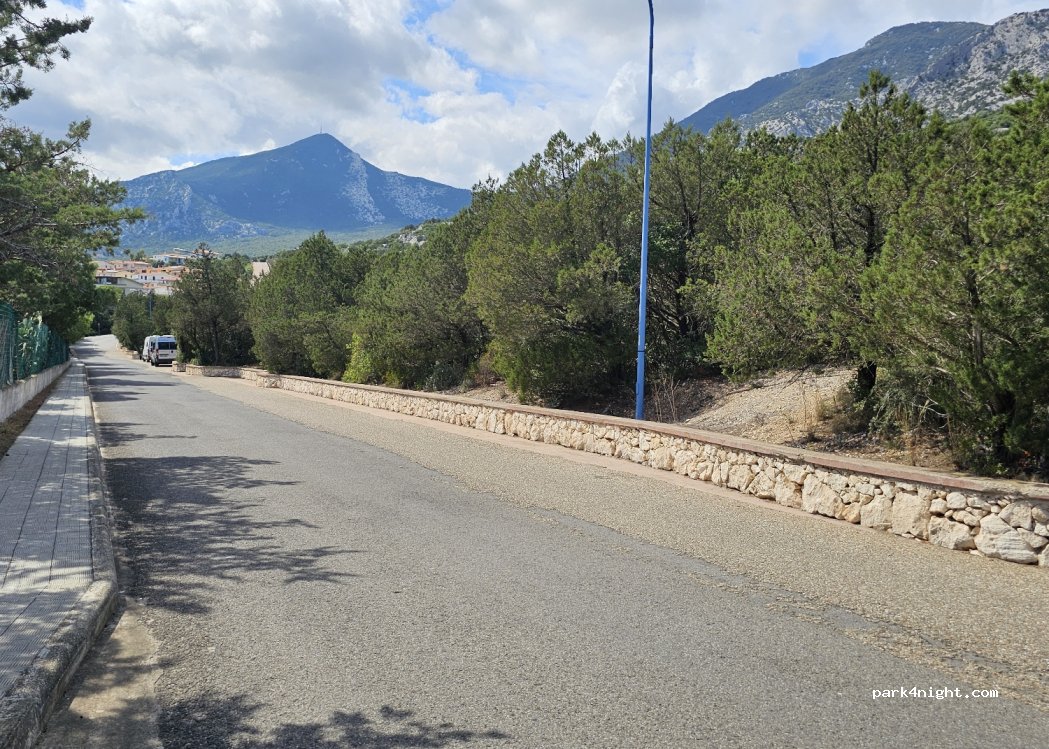 Parcheggio prenotato sul lato della strada. Nessun segnale di divieto.